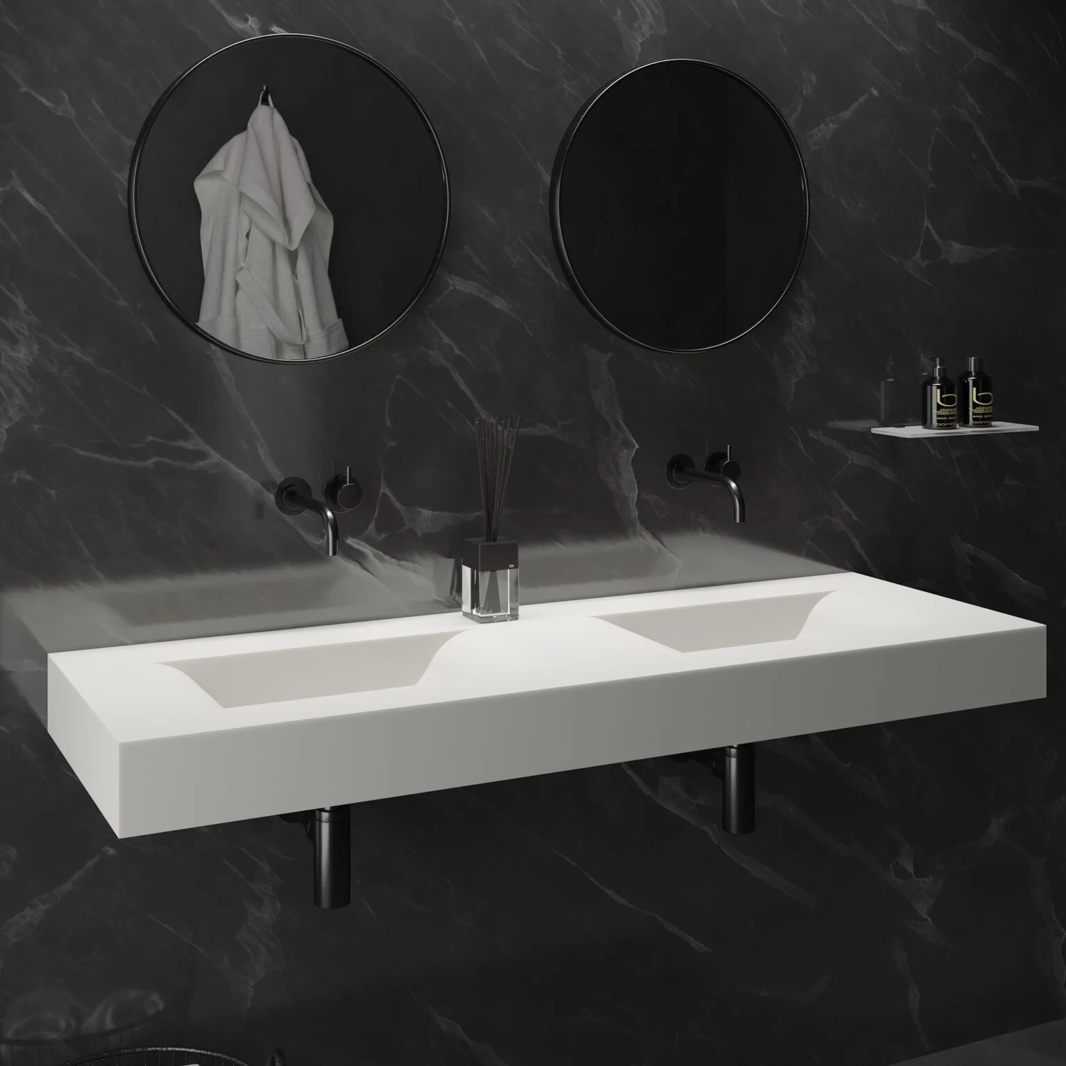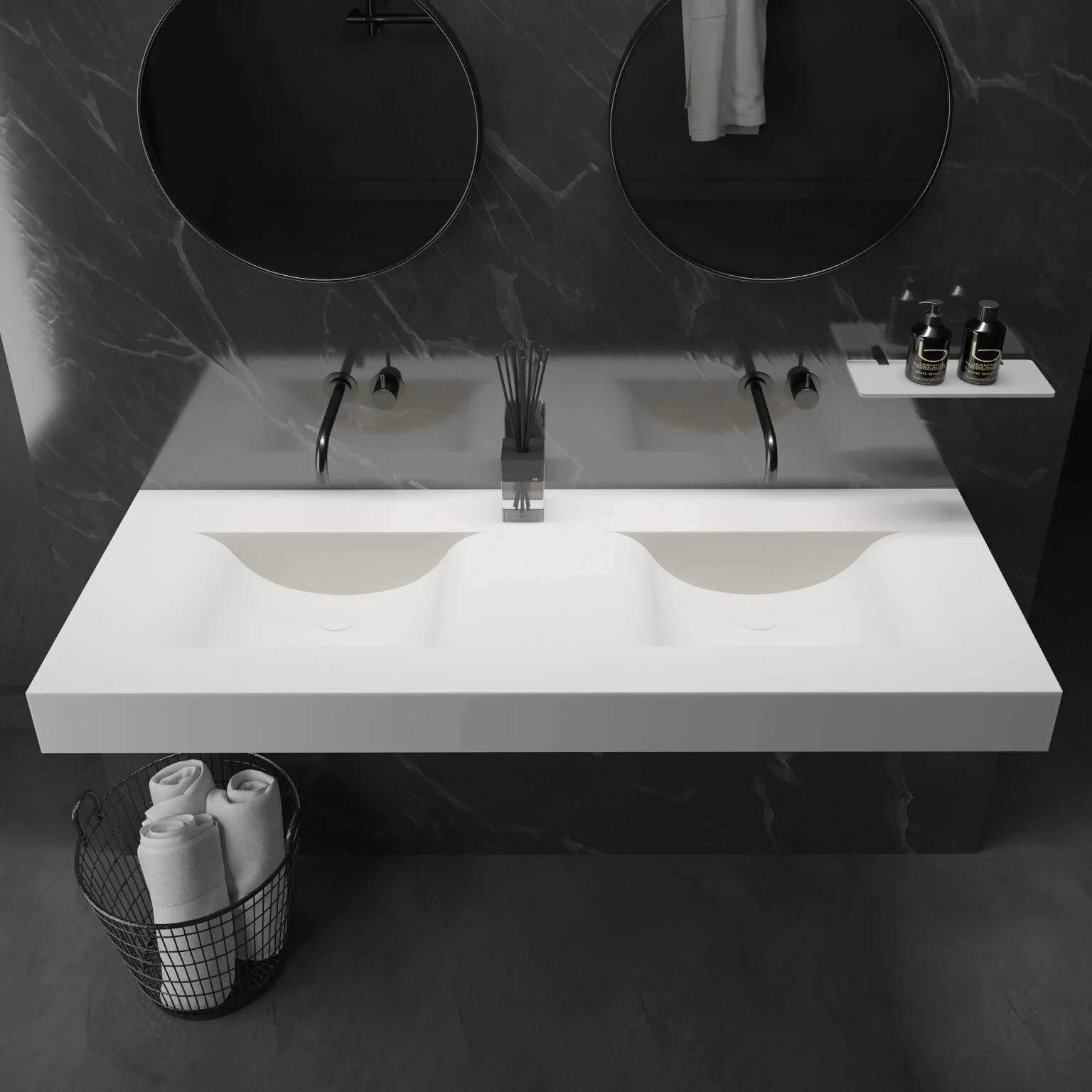 Elevate your bathroom’s style with this versatile and elegant VOLO 55″ wall-hung washbasin, designed to deliver both functionality and modern design appeal.